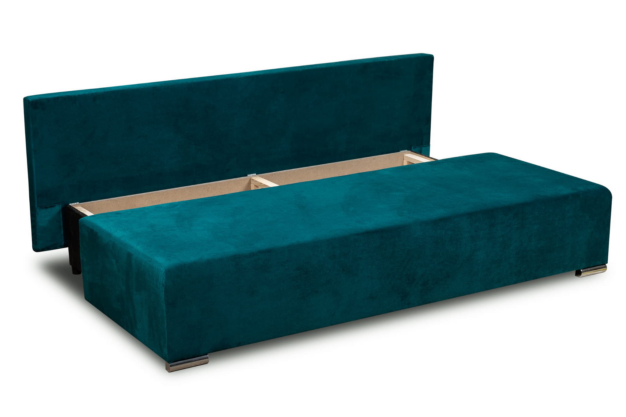 Vďaka tejto funkcii môžete pohovku jednoducho a rýchlo premeniť na pohodlné manželské lôžko. Stačí vybrať vankúše, mierne zdvihnúť prednú časť sedačky, vysunúť ju a spustiť. Potom sklopte operadlo a máte hotovo. Jednoduchý mechanizmus neobmedzuje kapacitu úložného priestoru na posteľnú bielizeň a nepoškriabe podlahu.