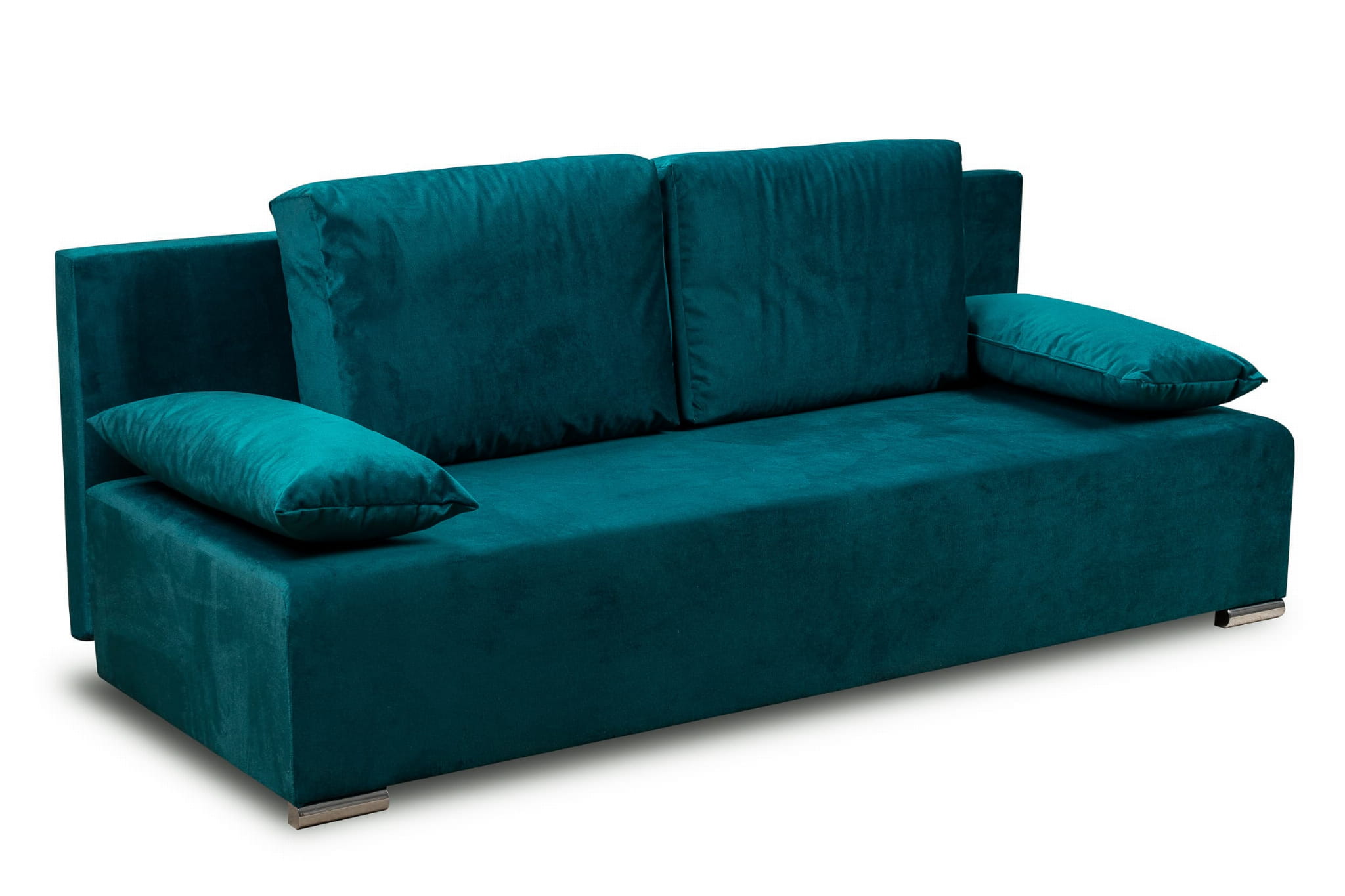 Vďaka tejto funkcii môžete pohovku jednoducho a rýchlo premeniť na pohodlné manželské lôžko. Stačí vybrať vankúše, mierne zdvihnúť prednú časť sedačky, vysunúť ju a spustiť. Potom sklopte operadlo a máte hotovo. Jednoduchý mechanizmus neobmedzuje kapacitu úložného priestoru na posteľnú bielizeň a nepoškriabe podlahu.