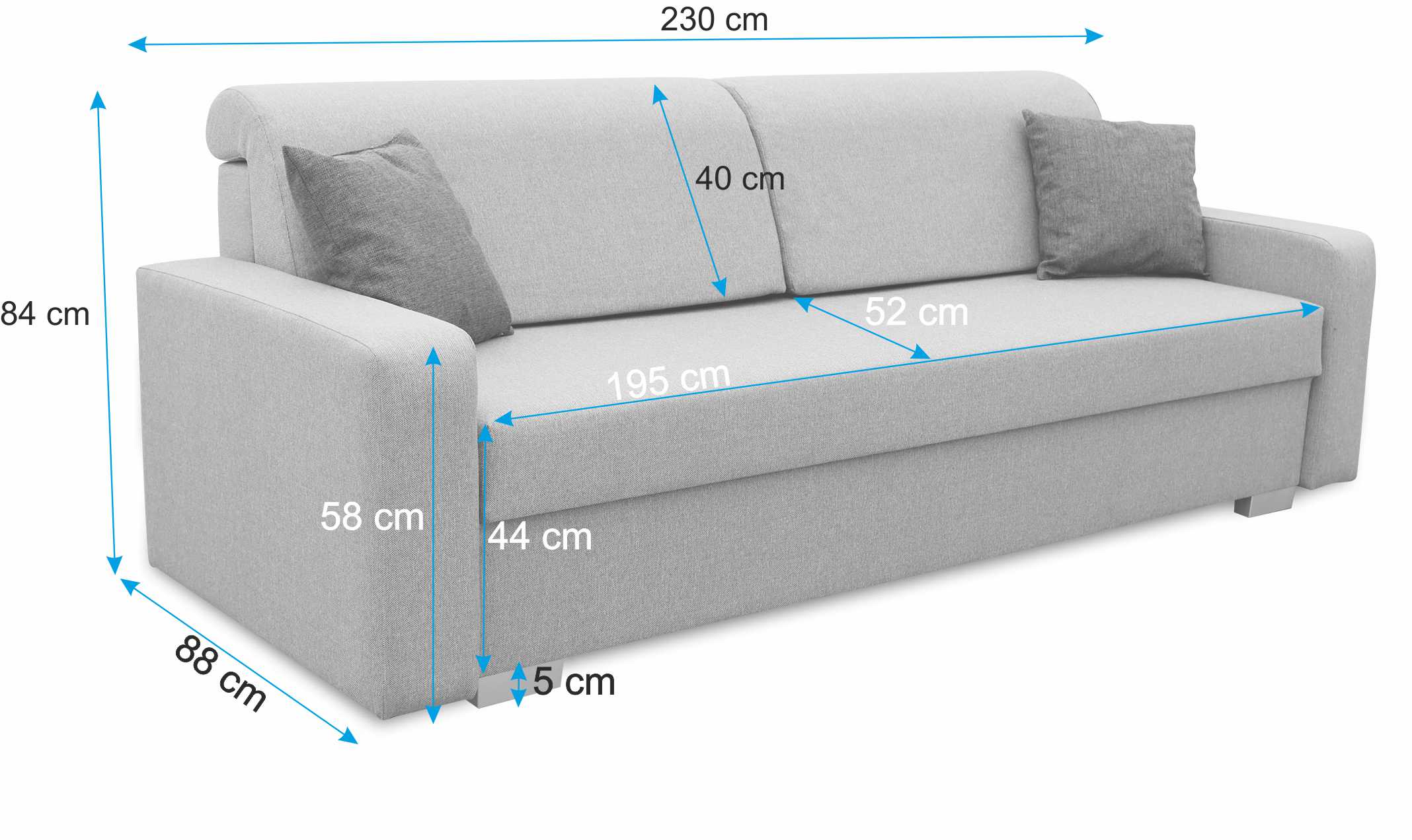 Umožňuje jednoducho a rýchlo premeniť pohovku na manželskú posteľ so šírkou 135 cm a dĺžkou 195 cm. Celá plocha na spanie je vyplnená pružinami bonell, ktoré výrazne zvýšia váš komfort spánku.
