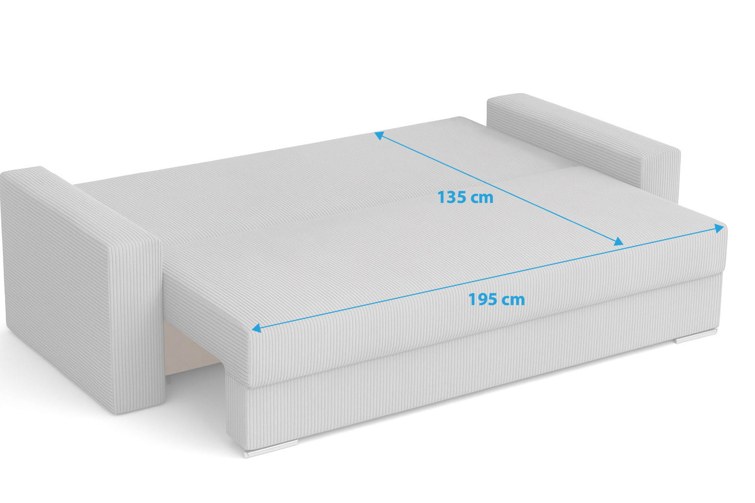 V priebehu chvíľky premeníte sedačku na dvojlôžkovú posteľ so šírkou 135 cm a dĺžkou 195 cm. Celá plocha je vyplnená bonellovými pružinami, takže lôžko poskytuje identickú tvrdosť a pohodlie na oboch stranách. Spíte ako na kvalitnom matraci.