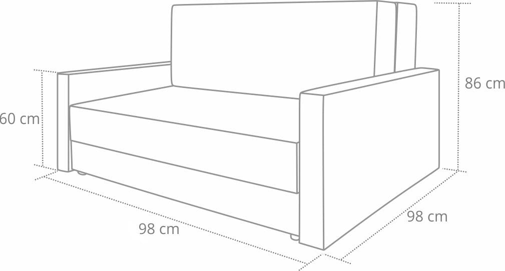 Multifunkčná jednomiestna pohovka/kreslo s funkciou spania. Umožňuje rozloženie na dve rôzne dĺžky. Senzačná do obývačky, pracovne alebo detskej izby. Má veľký kontajner na lôžkoviny.