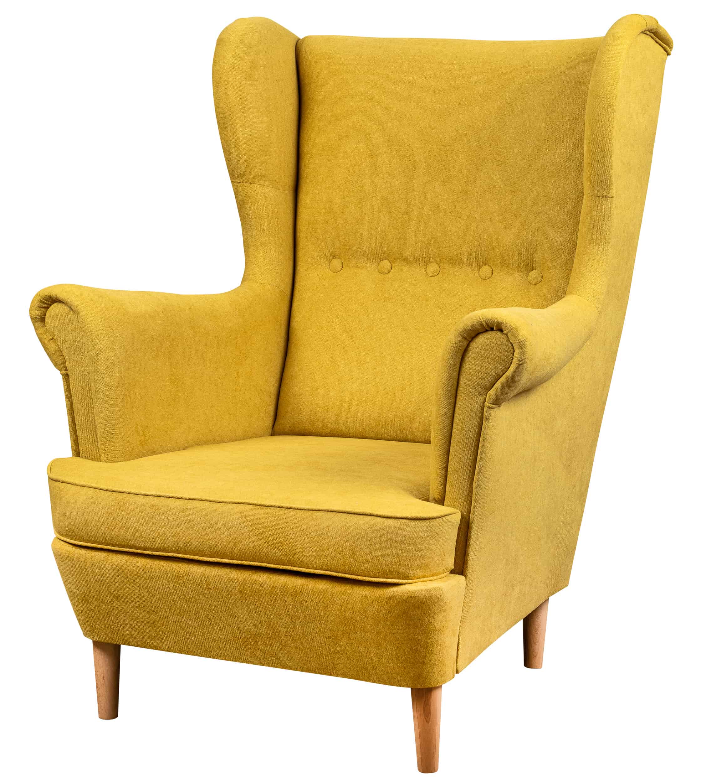 Kreslo a pohovka sú vyrobené v škandinávskom štýle. Vysoké a pohodlné operadlo a veľké tvarované podrúčky poskytujú výnimočne pohodlný odpočinok. Základ nábytku tvoria štyri masívne drevené nohy v prírodnej svetlej farbe. Hlboké sedadlo a pohodlné operadlo s charakteristickými "ušami", tzv.