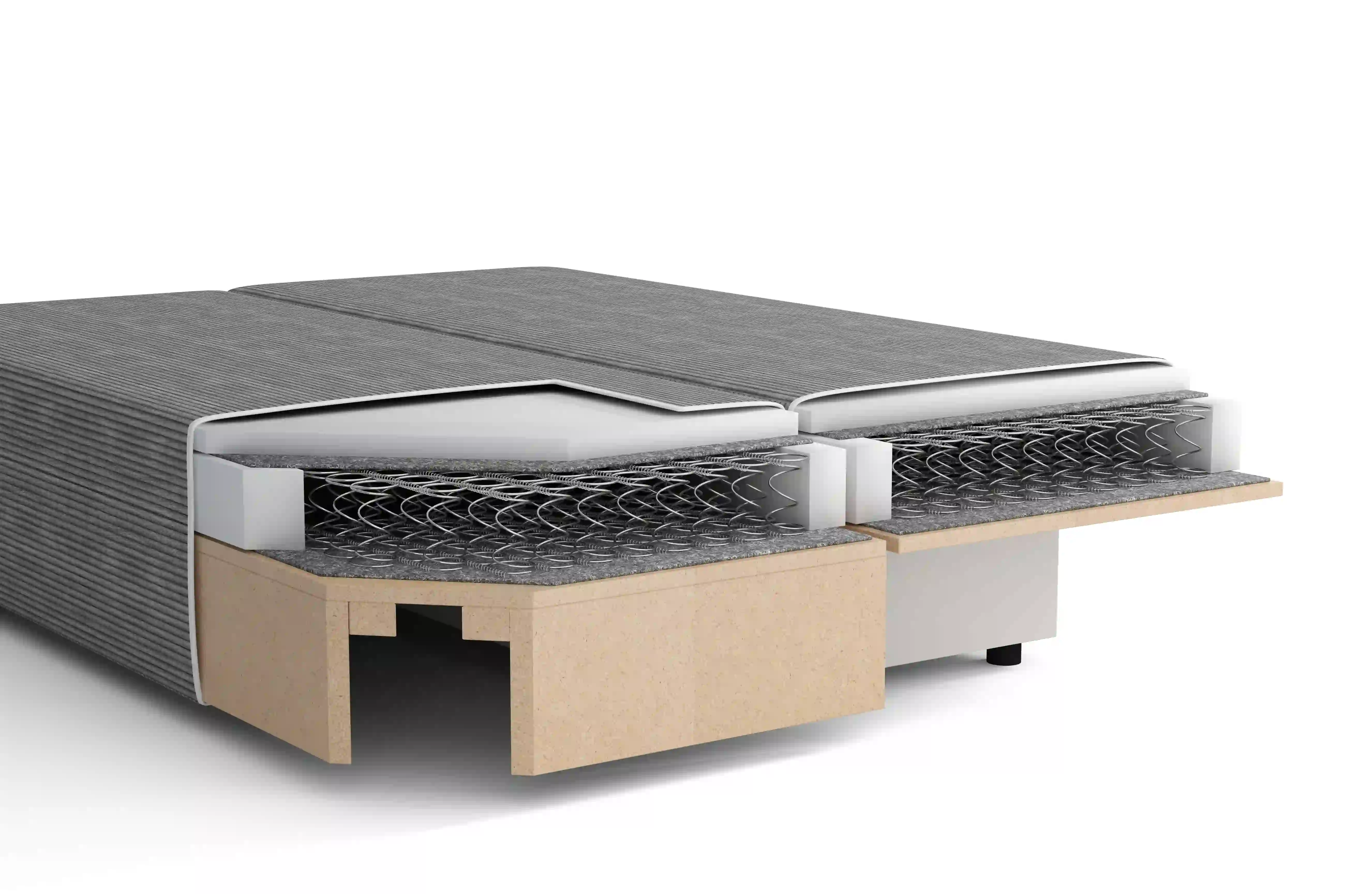 - ✅ Bonellové pružiny v sedadle aj operadle zabezpečujú komfort a rovnomernú tvrdosť po rozložení