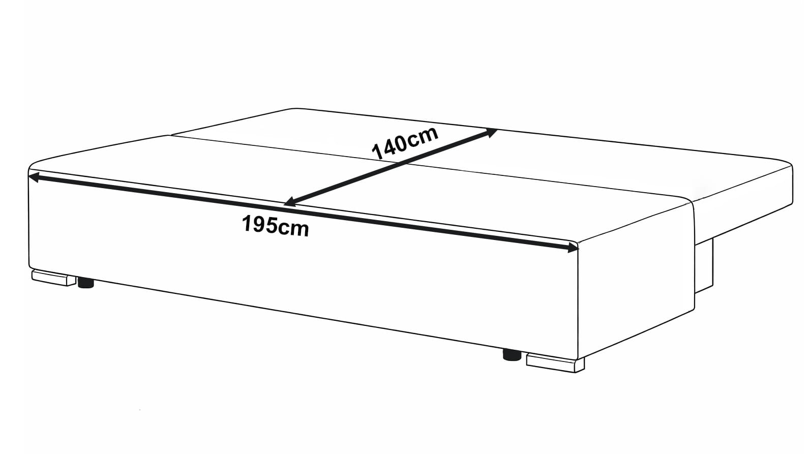 Jednoducho a rýchlo rozložíte pohovku na dvojlôžko s rozmermi 140 × 195 cm. Celá plocha spania je vyplnená bonellovými pružinami s rovnakou tvrdosťou a výškou, čo poskytuje rovnaký komfort ako kvalitný matrac. Spacia plocha je rozdelená na dve rovnaké časti, každá široká 70 cm.