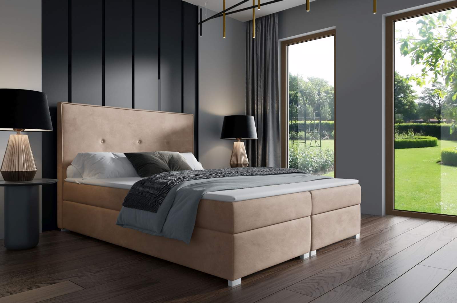 Robustná a odolná čalúnená kontinentálna posteľ je ideálna pre tých, ktorí ocenia moderný dizajn v kombinácii s pohodlím a eleganciou. Vďaka širokému výberu rozmerov a farieb ju môžete ľahko prispôsobiť akémukoľvek štýlu a veľkosti vašej spálne. Mäkké okraje a krásne prešívané čelo postele vytvoria vo vašej spálni jedinečnú atmosféru, ktorá vám umožní odpočívať a relaxovať po dlhom dni. Naša čalúnená posteľ je ideálnou voľbou pre tých, ktorí hľadajú kvalitný a štýlový kus nábytku do svojej spálne.