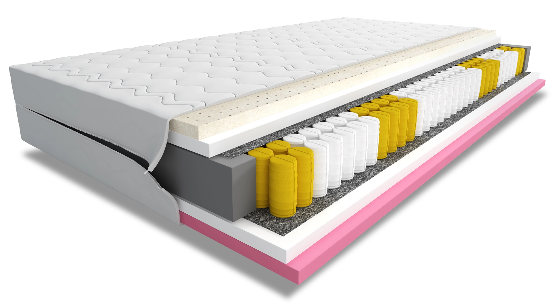 - Pohodlie a opora: Dokonale sa prispôsobí tvaru vášho tela vďaka kombinácii latexu, polyuretánovej peny a taštičkových pružín.