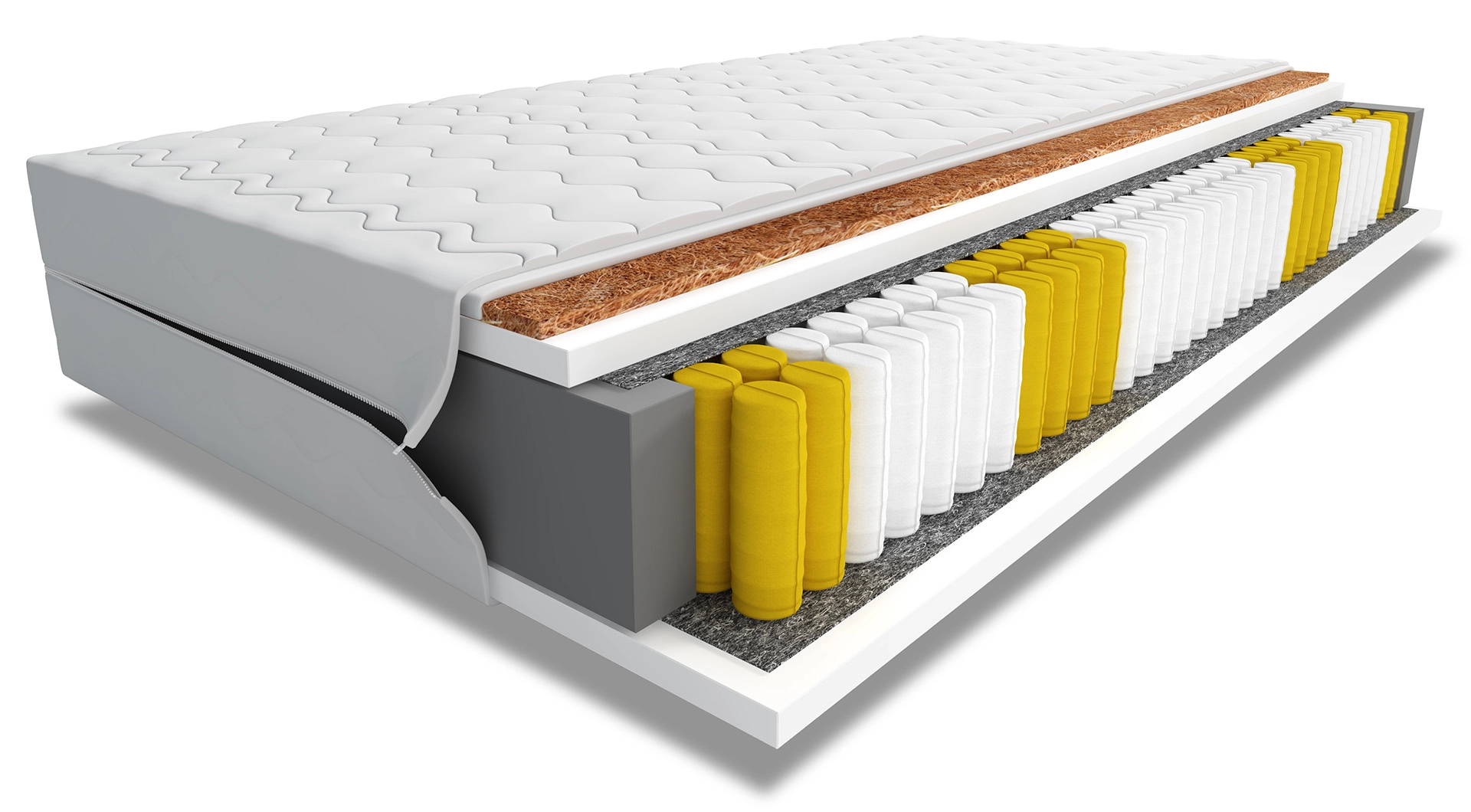 - Pohodlie a opora: Dokonalé prispôsobenie tvaru tela vďaka kombinácii peny, kokosového vlákna a taštičkových pružín.
