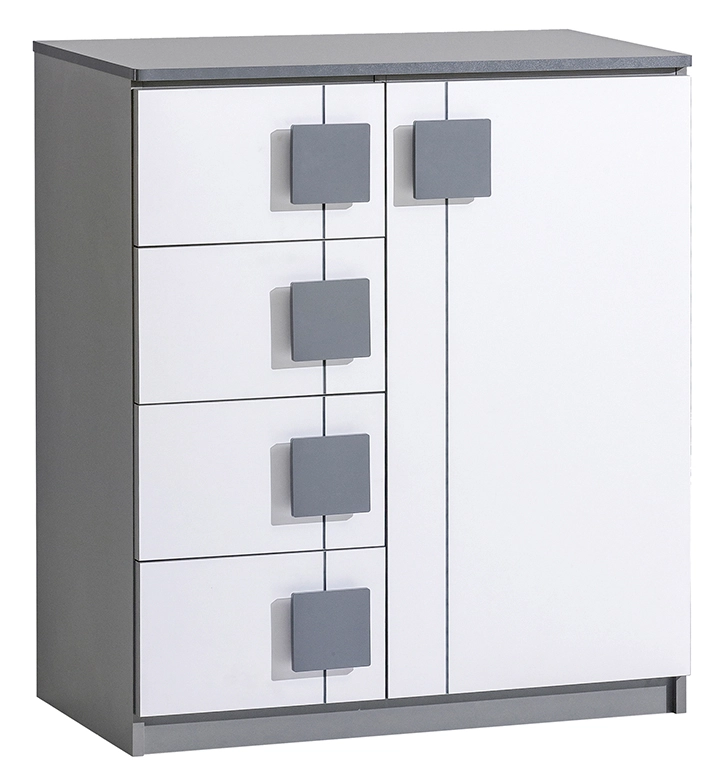 Objavte moderný dizajn a funkčnosť v jednom - komoda Gumi so 4 zásuvkami G3 biela/antracitová!