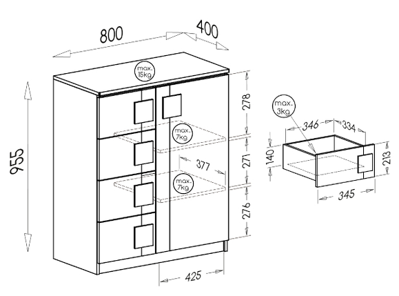 Komoda Gumi G3 biela/antracitová - rozmery:
