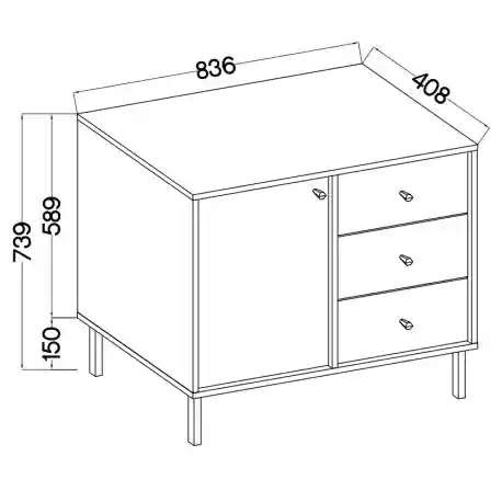 Skvelá voľba pre praktické úložné riešenie so štýlovým vzhľadom. Komoda pomôže udržiavať poriadok a zároveň obohatí interiér elegantným akcentom. Vďaka univerzálnej forme môže slúžiť ako skrinka na textílie, dokumenty či doplnky. V kombinácii s ďalšími prvkami kolekcie vytvára harmonický celok.