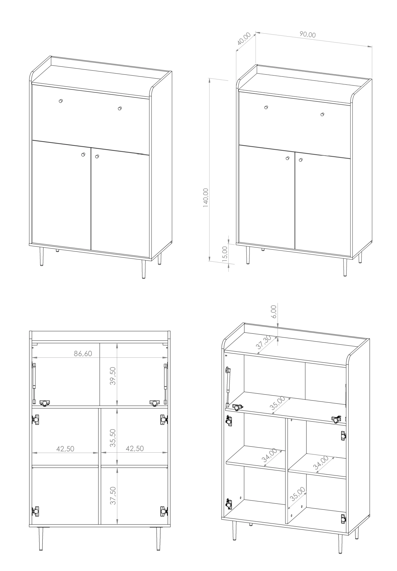 Vasina VS03 bar chest of drawers - Dimensions/Specifications: