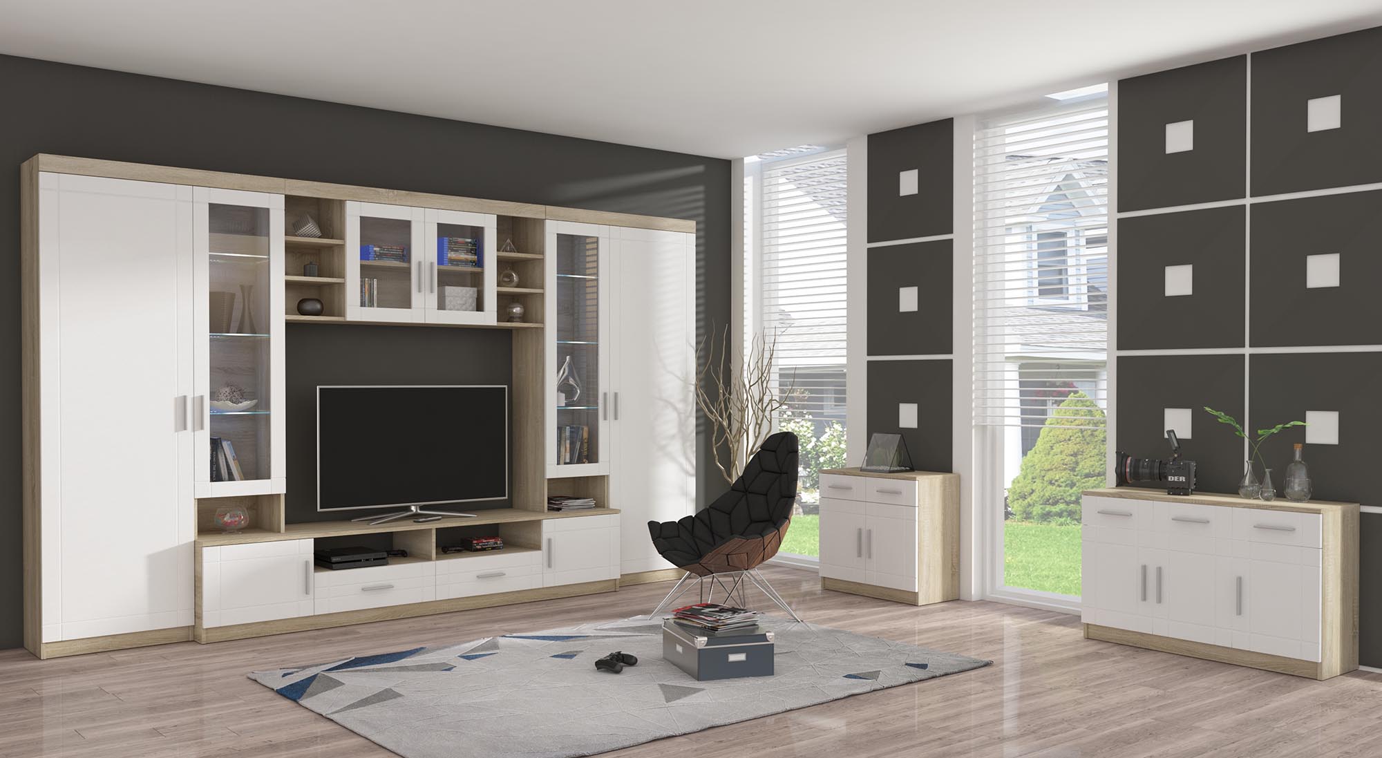 Nástenná zostava Paris dokonale zapadne do obývacích izieb zariadených v teplom, rodinnom a útulnom provensálskom štýle. Súprava Paris sa vyznačuje elegantným, ale nenápadným dekorom na čelách. Vyrezávané rovné línie dodávajú šarm a zároveň priťahujú pozornosť. Farebné varianty biela matná a grafitová majú lamely vyrobené z duba sonoma. Kombinácia týchto farieb pôsobí mimoriadne efektne a bude ozdobou každej provensálskej obývačky.