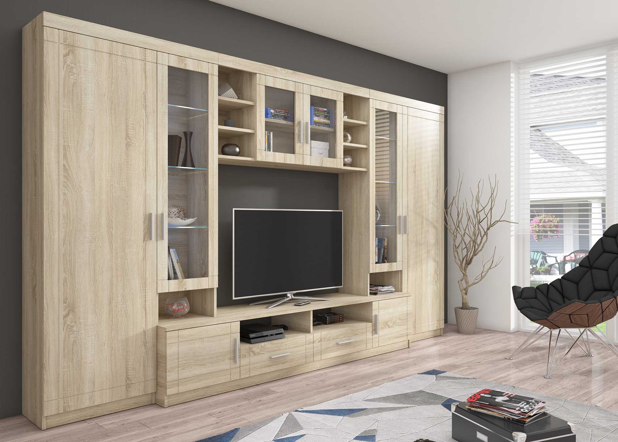 Súprava Paris sa skladá z dvoch vitrín, ktoré sú navzájom zrkadlovými obrazmi. V oboch krajných častiach nájdete uzavretú policu, ako aj sklenené dvierka so štyrmi policami. Je tu teda dostatok priestoru na vystavenie kryštálov, vzácnych suvenírov alebo riadu. Sklenené police majú navyše možnosť inštalácie LED osvetlenia, takže večer môžete stráviť atmosférický večer pri jemnom osvetlení parížskej súpravy. Srdcom súpravy je veľký a funkčný mediálny stolík. Bez obáv naň môžete umiestniť veľký televízor a pod neho do otvorených políc set-top box, konzolu alebo router. Okrem toho sú tu dve zásuvky, ako aj dve uzatvárateľné police. Posledným, ale veľmi dôležitým, funkčným a pôvabným prvkom súpravy je závesná polica so sklenenými dvierkami. Okrem toho sa vo voľnom priestore medzi vitrínou a závesnou policou nachádza aj miesto na umiestnenie fotorámčeka, knihy alebo malej kvetiny.