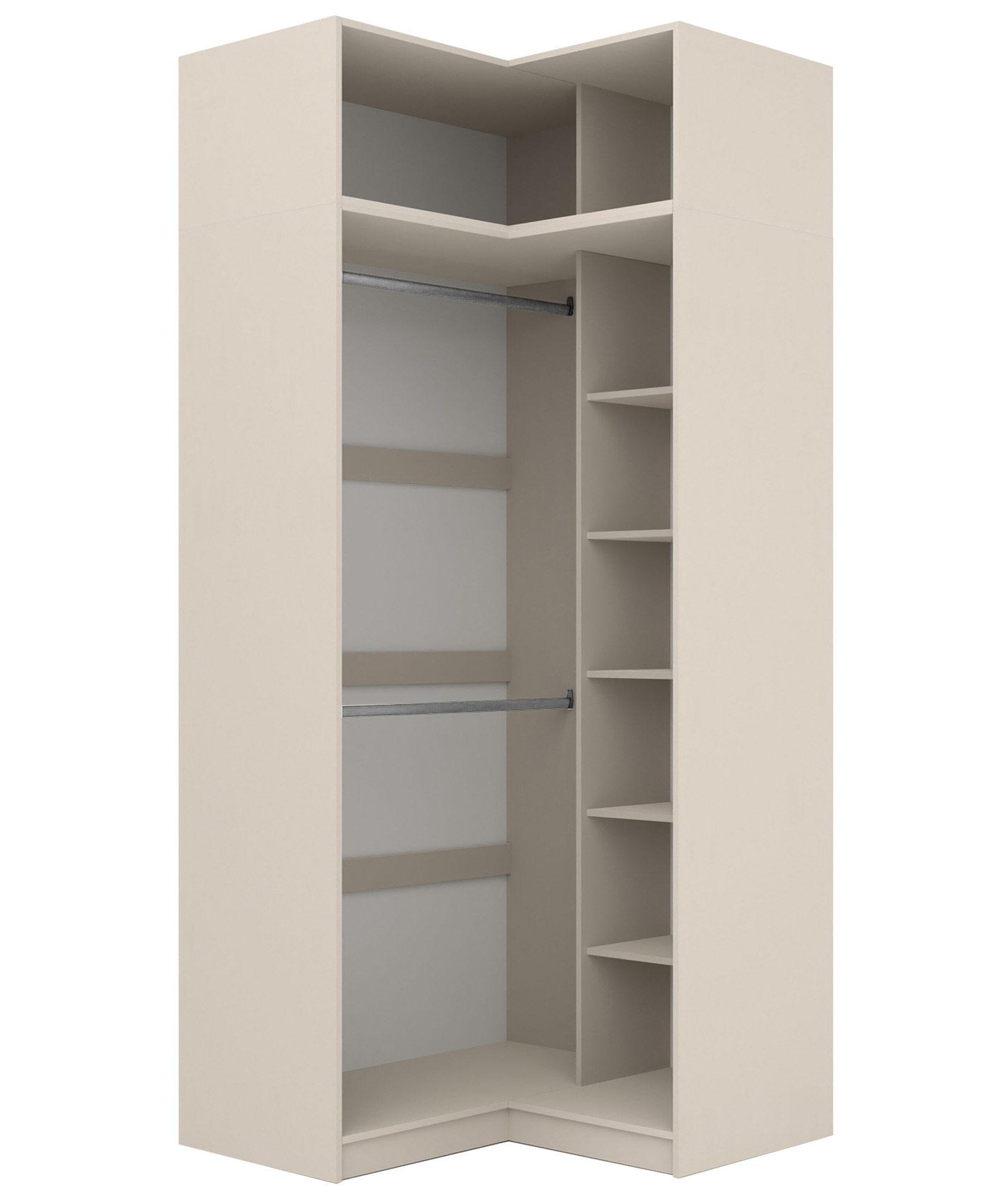 Rohová šatníková skriňa s nadstavcom 50 cm pre modulovú šatníkovú skriňu Foxen Cashmere