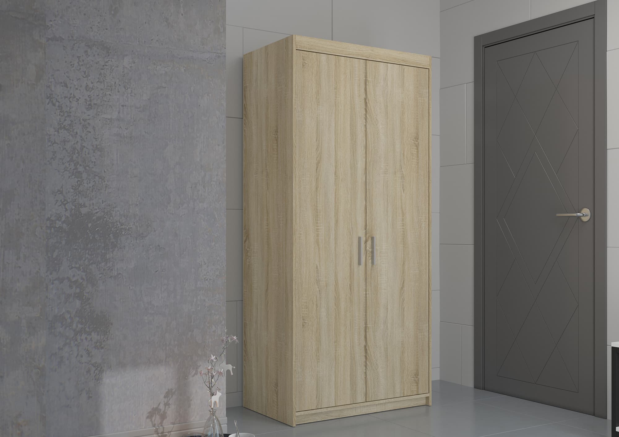 Dvojdverová šatníková skriňa Elena zaberá málo miesta, takže pre ňu ľahko nájdete miesto. Aj v malej izbe pre mladých si šatníková skriňa nájde svoj kútik. Šírka nábytku je 89,7 cm. Napriek tomu malé rozmery nebránia tomu, aby bol nábytok praktický. Šatníková skriňa má rozumne usporiadanú konfiguráciu políc. Svoje miesto si nájde v spálni, kde pojme oblečenie aj posteľnú bielizeň. V detskej izbe môžeme vyčleniť celé police ako priestor na hračky. V kancelárii môžeme časť s vešiakom využiť na náhradné sako, blejzr alebo košeľu, zatiaľ čo praktické police môžeme využiť na dokumenty.