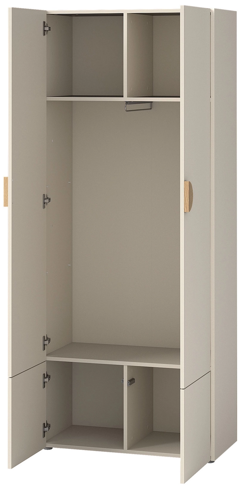Jedinečná a elegantná šatníková skriňa Melo ME1 je dokonalým riešením pre každú spálňu. Jej moderný dizajn vo farbe kašmír dodá vašej spálni charakter a štýl. Šatníková skriňa Melo ME1 ponúka množstvo úložného priestoru vďaka 4 výklopným dverám a 7 praktickým policiam. Pevná konštrukcia a matná povrchová úprava zaručujú odolnosť a estetiku na dlhé roky. Táto funkčná šatníková skriňa dokonale zapadne do zariadenia vašej spálne.