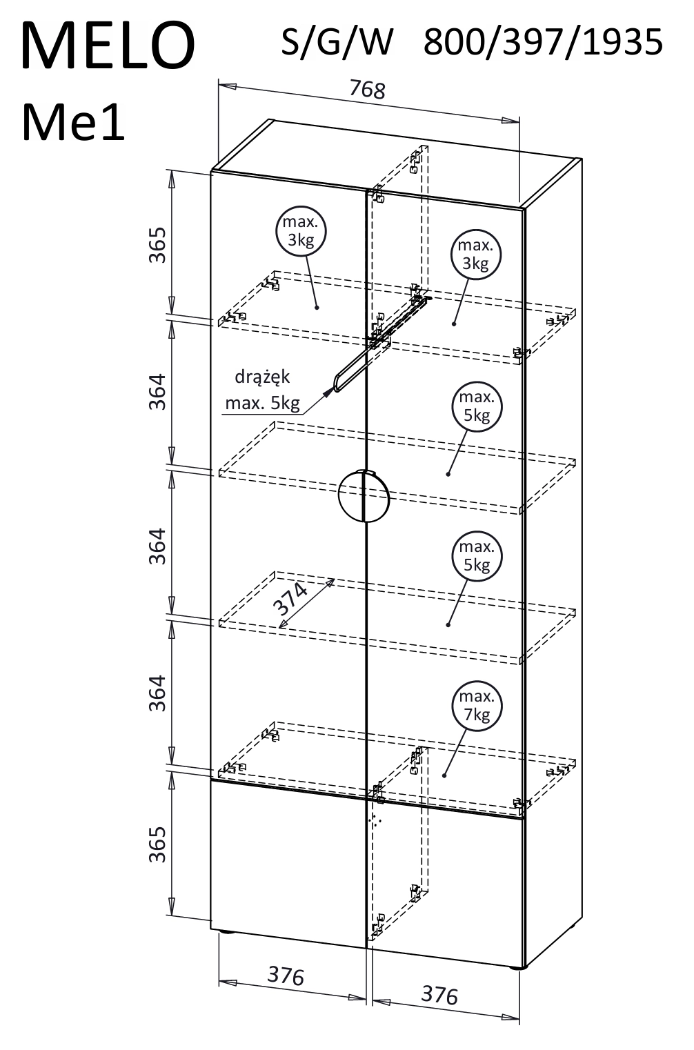 Melo ME1 je mimoriadne všestranná šatníková skriňa určená na praktické uloženie vašich vecí. Použité police a priestranný interiér vám umožnia voľne usporiadať oblečenie, obuv a ďalšie doplnky bez potreby vešiakov. Pevná konštrukcia a kvalitné spracovanie zaručujú nielen estetiku, ale aj odolnosť a funkčnosť na roky používania. Melo ME1 je nielen kus nábytku, ale aj riešenie, ktoré vám uľahčí udržiavanie poriadku a organizácie vo vašom priestore. Vďaka tejto skrini si môžete užívať nielen eleganciu, ale aj každodennú praktickosť.