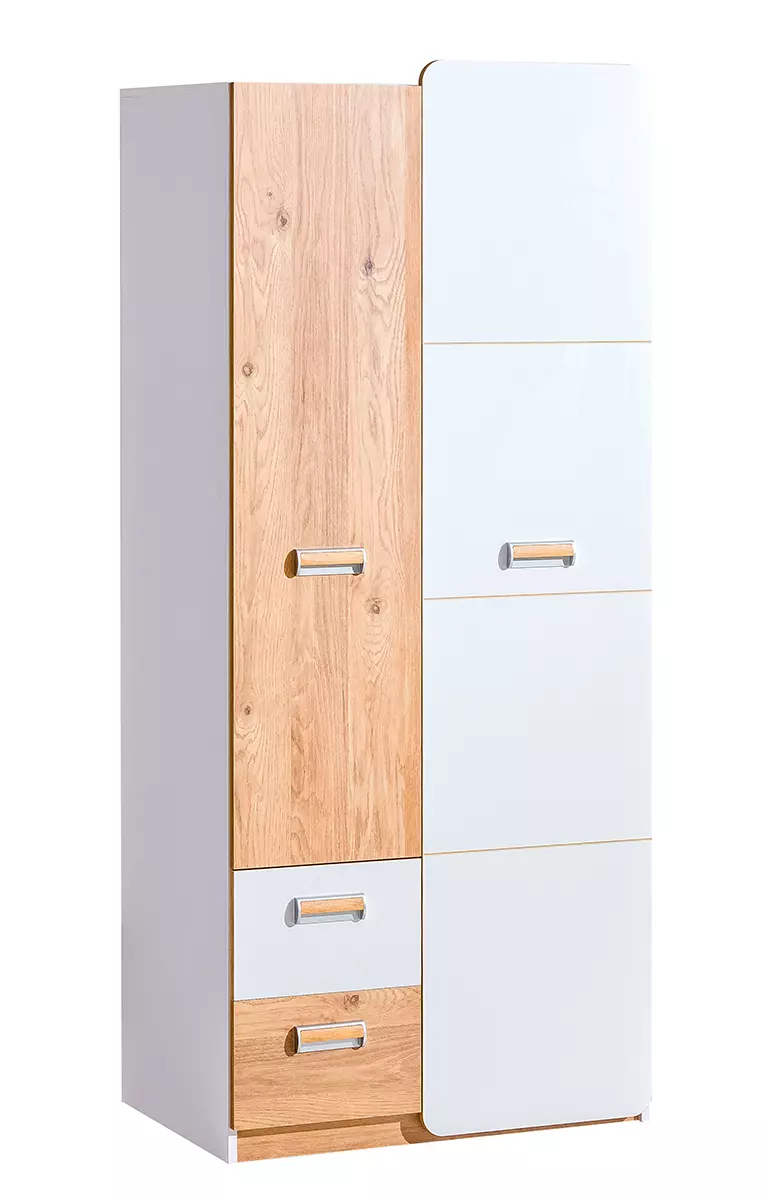 Šatníková skriňa Lorento 01 so zásuvkami je funkčné a štýlové riešenie, ideálne pre dynamický životný štýl dnešných tínedžerov. S ohľadom na potreby mladej generácie bola vytvorená šatníková skriňa, ktorá plní nielen funkciu úložného priestoru, ale aj obohacuje interiér spálne alebo izby pre mladých. Šatníková skriňa bola navrhnutá tak, aby maximálne využila dostupný priestor. Vnútorný priestor bol rozdelený na rôzne časti vrátane praktických políc, tyčí na oblečenie a zásuviek, ktoré uľahčia organizáciu oblečenia, obuvi a iných doplnkov.