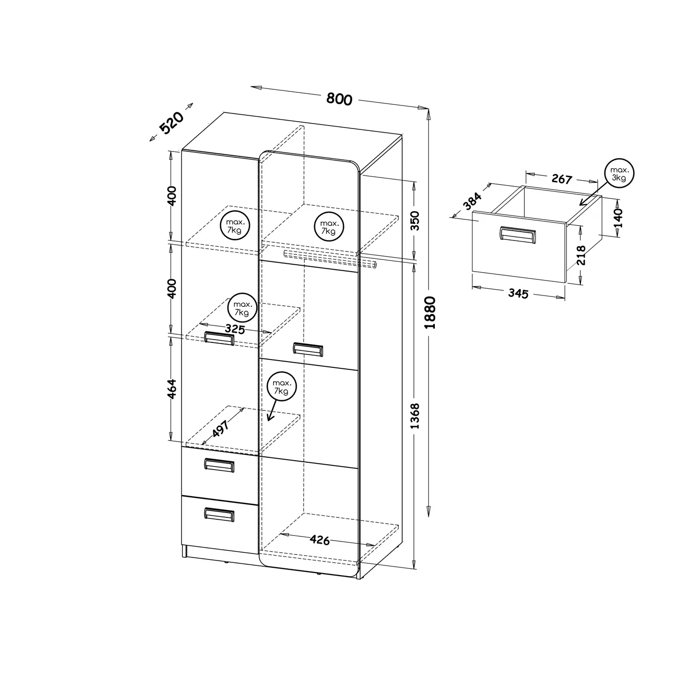 Šatníková skriňa 80 cm so zásuvkami Lorento 01