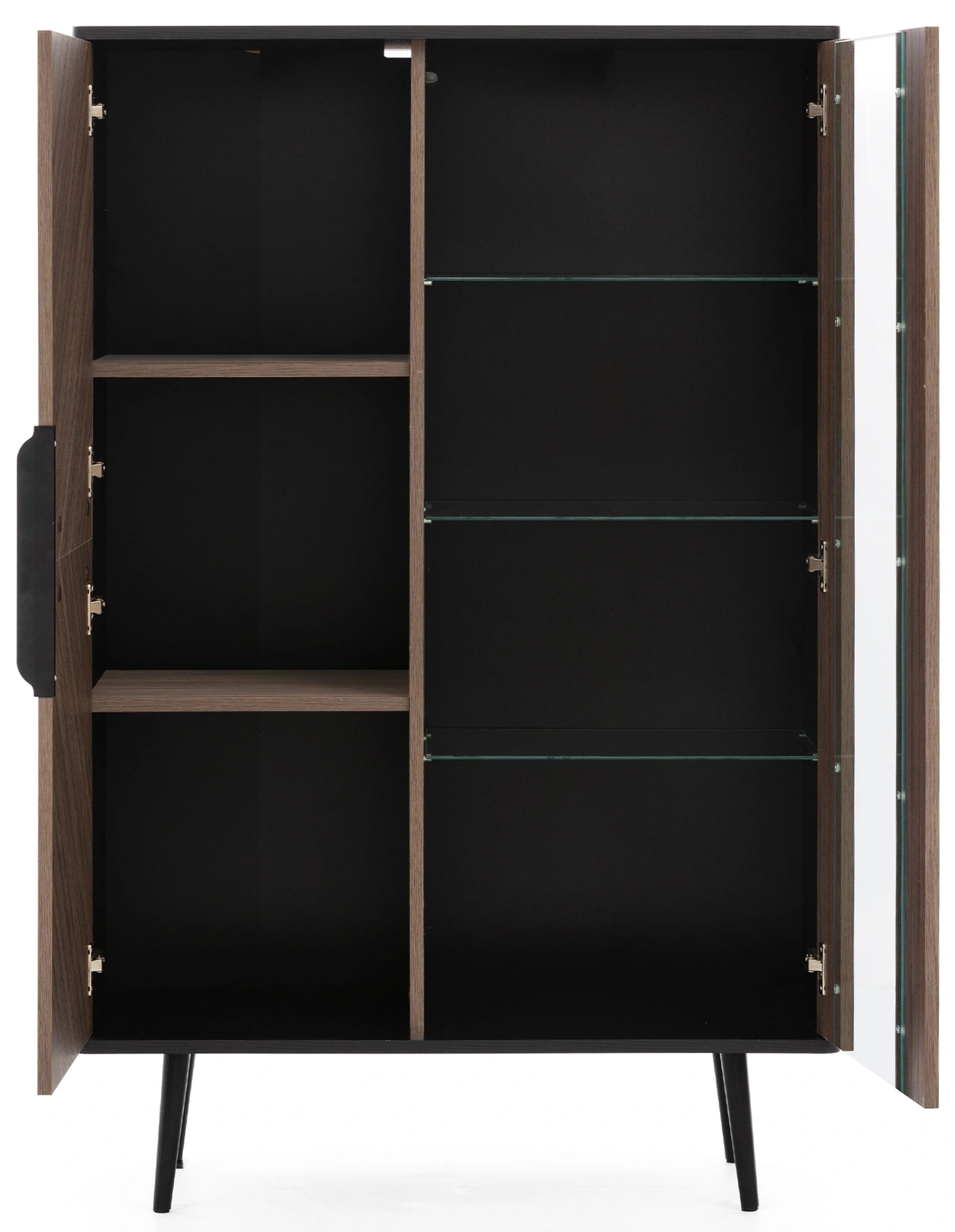 Odlíšte svoju obývaciu izbu štýlovou a funkčnou vitrínou Pinelli PN-05 v elegantnom farebnom prevedení čierna grafitová a Captains Deck. Bola vytvorená s ohľadom na moderné interiéry a spája minimalistický dizajn s praktickosťou. Vďaka dvom výklopným dvierkam, siedmim policiam a nízkym kovovým nožičkám poskytuje dostatok úložného priestoru bez toho, aby sa obetovala estetika. Matný povrch dodáva eleganciu, zatiaľ čo robustná konštrukcia zaručuje dlhodobú spokojnosť s používaním. Ideálna voľba pre tých, ktorí ocenia štýl, kvalitu a funkčnosť v jednom!