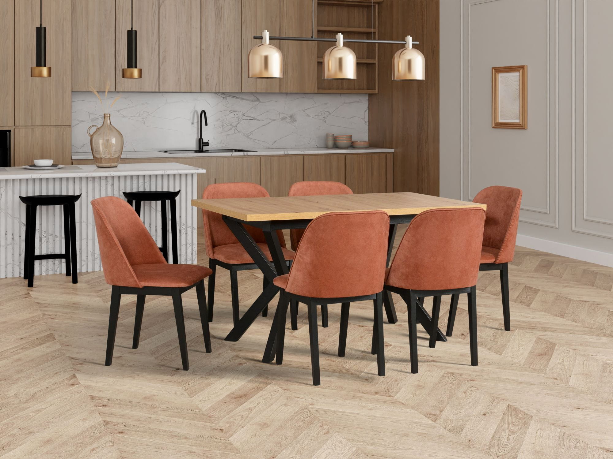 Čierny rám krásne kontrastuje s medeným odtieňom čalúnenia, čím vytvára harmonickú farebnú kombináciu. Toto kreslo sa dokonale hodí do moderných aj klasických interiérov a dodáva im exkluzívny charakter.
