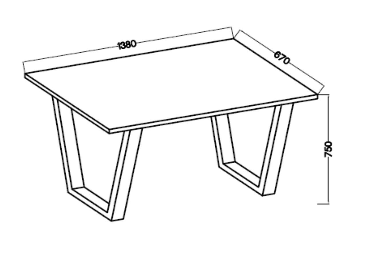 Pevná doska stola s hrúbkou 2,8 cm a rozmermi. 138 × 67 cm