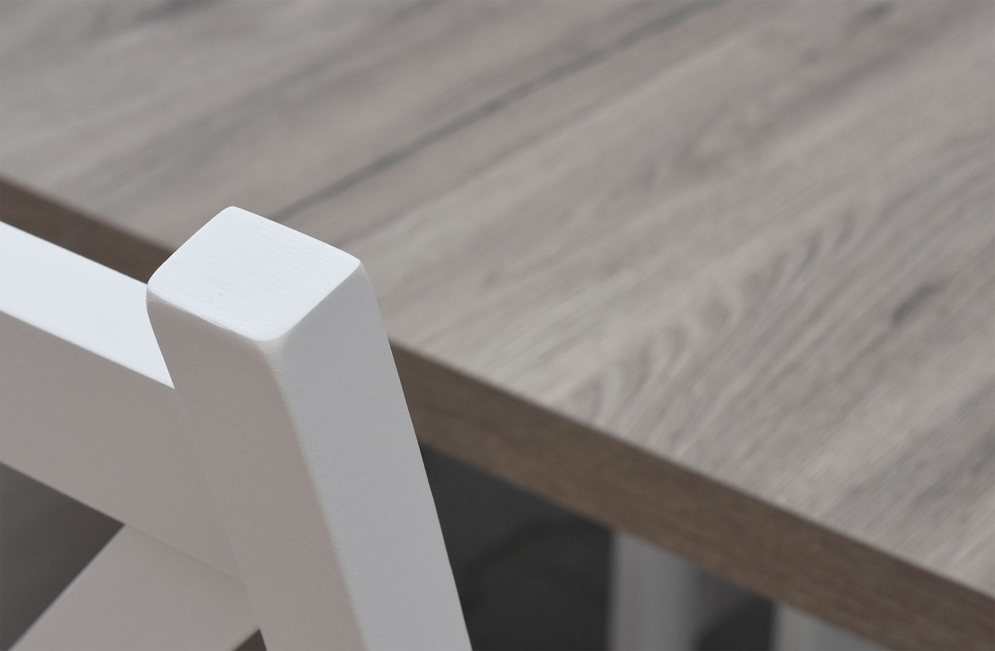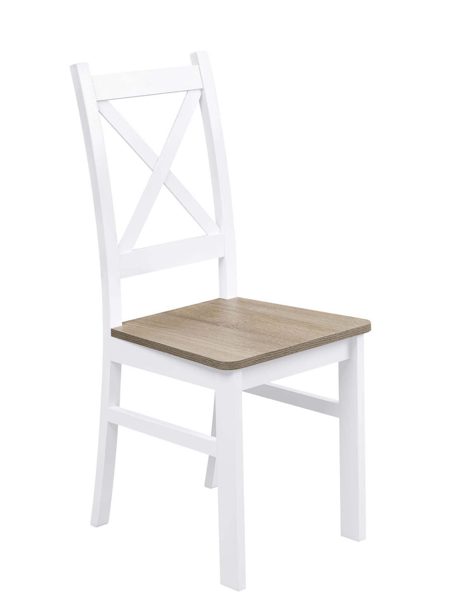 Pevná a kompaktná súprava stôl + 4 stoličky z lepeného bukového dreva. Doska stola je vyrobená z laminovanej dosky ukončenej ABS hranou. Vďaka silným nohám stola je súprava veľmi stabilná a odolná.
